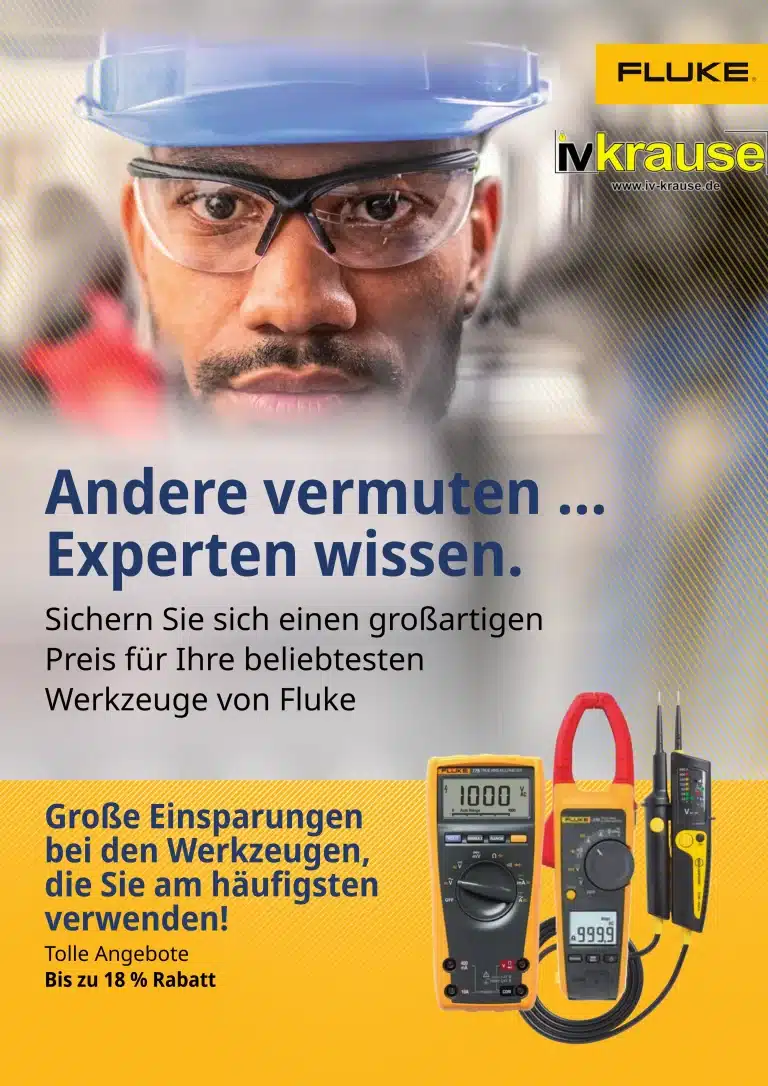 Download Bereich Fluke Fluke Messgeräte Frühjahrs-Aktion 2026 Fluke hat auch im diesem Jahr eine Frühjahrs-Aktion in der Mess- und Prüftechnik und bietet exklusive Rabatte auf erstklassige Produkte an. Darüber hinaus sind diese Aktionsartikel nicht nur wegen ihrer attraktiven Preise verlockend. Sie bieten auch eine großartige Gelegenheit, das Sortiment von Fluke